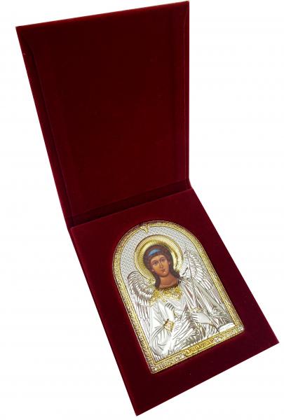 Лицевая часть оклада покрыта серебром повышенной 998 пробы - на окладе имеется клеймо по европейскому стандарту (Lam. Ag). Оклад имеет золотой декор. Фото-печать.