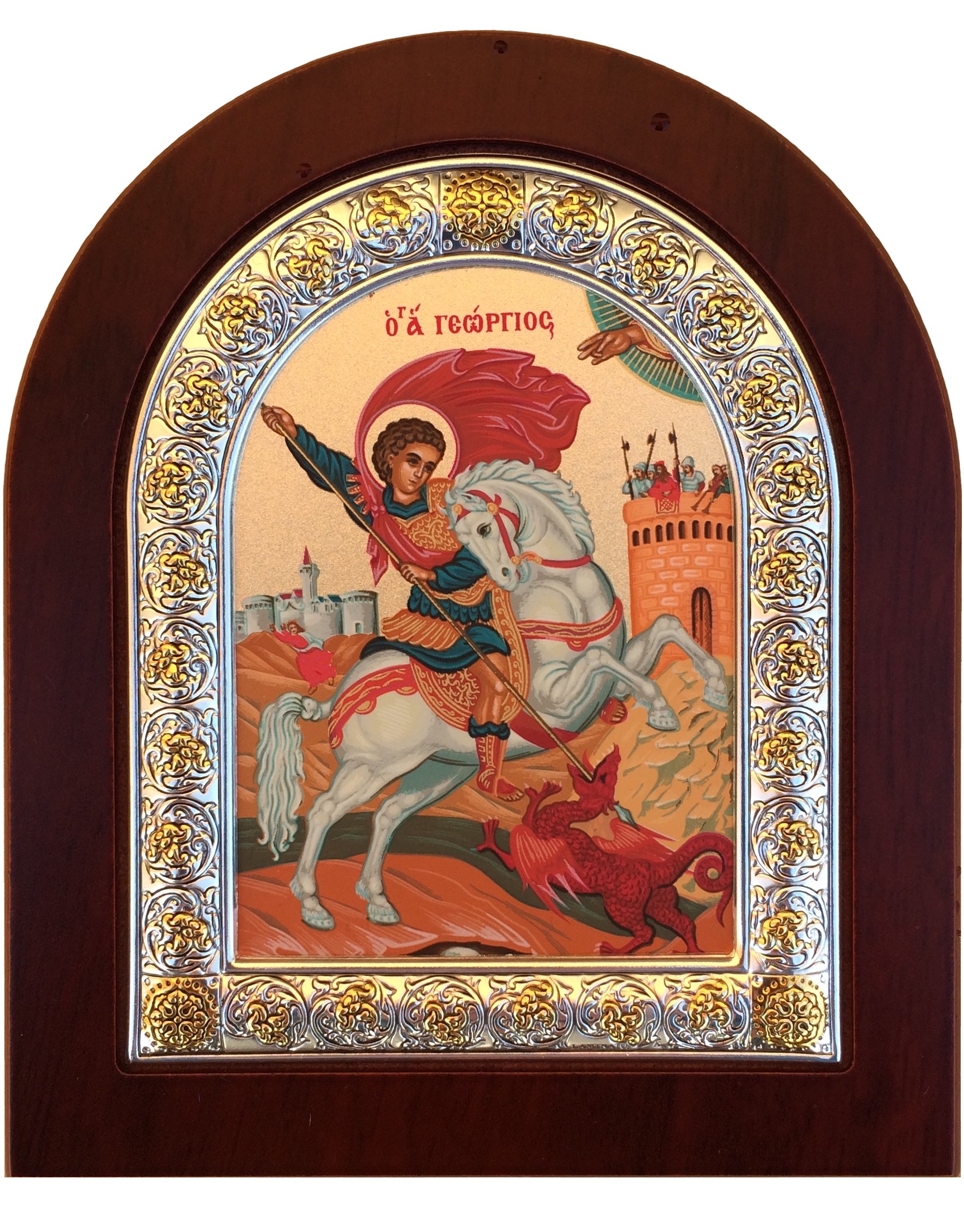 Рамка покрыта серебром повышенной 998 пробы. Лик выполнен масляной краской (шелкография). Икона декорирована золотом.
