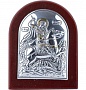 Лицевая часть оклада покрыта серебром повышенной 998 пробы - на окладе имеется клеймо по европейскому стандарту (Lam. Ag). Оклад имеет золотой декор. Закрытый лик.