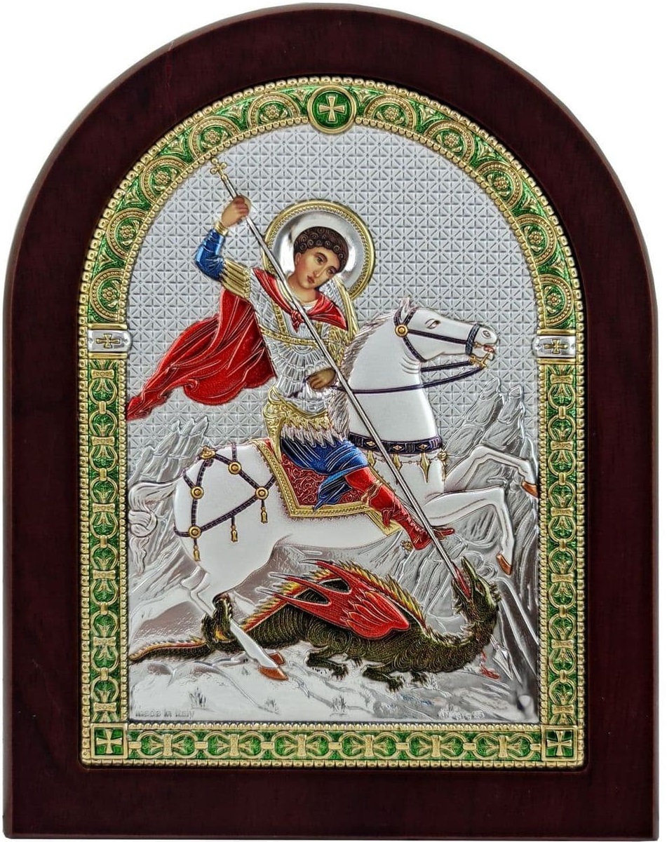 Икона св. Георгий Победоносец. Выполнена на деревянной основе (МДФ). Имеет подставку.