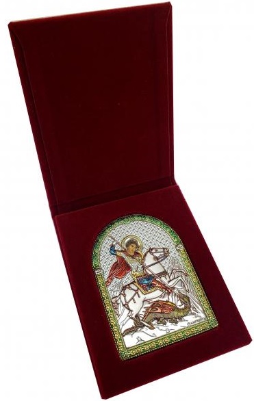 Икона св. Георгий Победоносец. Основание - складной бархатный футляр. Удобно брать в дорогу.