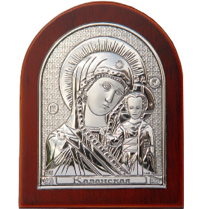 Лицевая часть оклада покрыта серебром повышенной 998 пробы - на окладе имеется клеймо по европейскому стандарту (Lam. Ag). Закрытый лик.