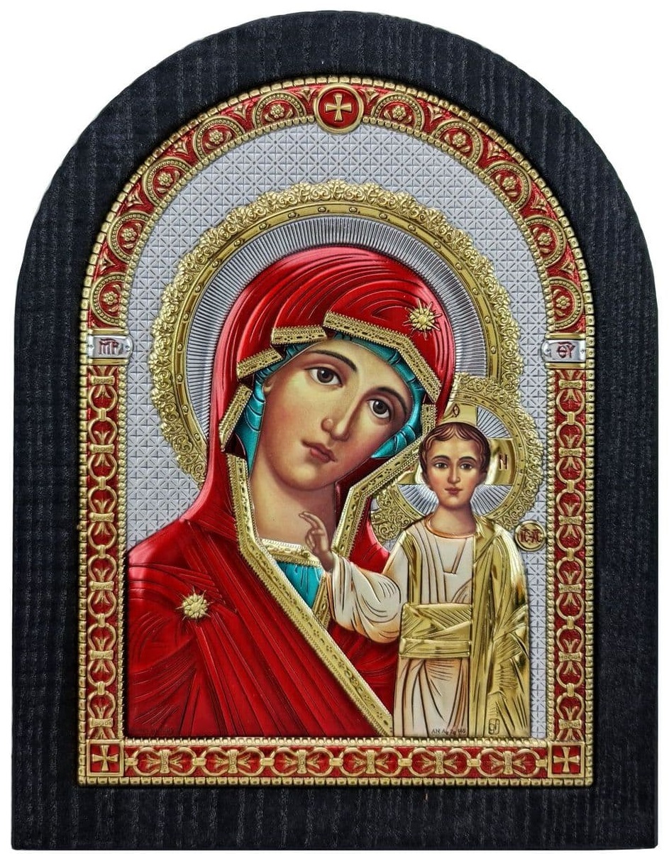 Икона Божьей Матери Казанская. Основа - цельный массив натурального дерева (дуб/ясень). Цвет - черный. Основание каждого изделия покрывается натуральным маслом, что обеспечивает гарантию высокого качества и долговечности каждого изделия. Имеет подставку.
