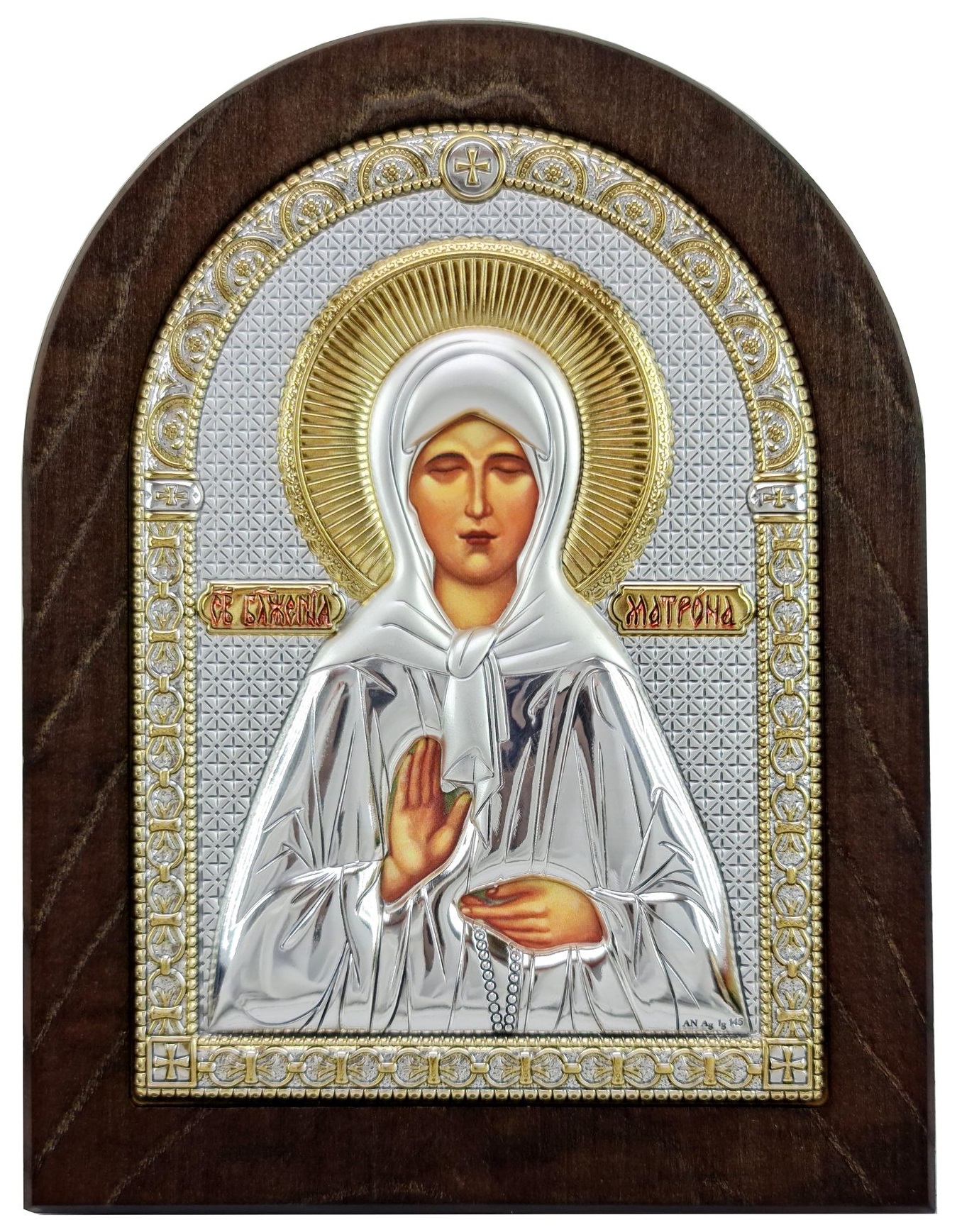 Икона св. Блаженная Матрона. Основа - цельный массив натурального дерева (дуб/ясень). Цвет - коричневый. Основание каждого изделия покрывается натуральным маслом, что обеспечивает гарантию высокого качества и долговечности каждого изделия. Имеет подставку.