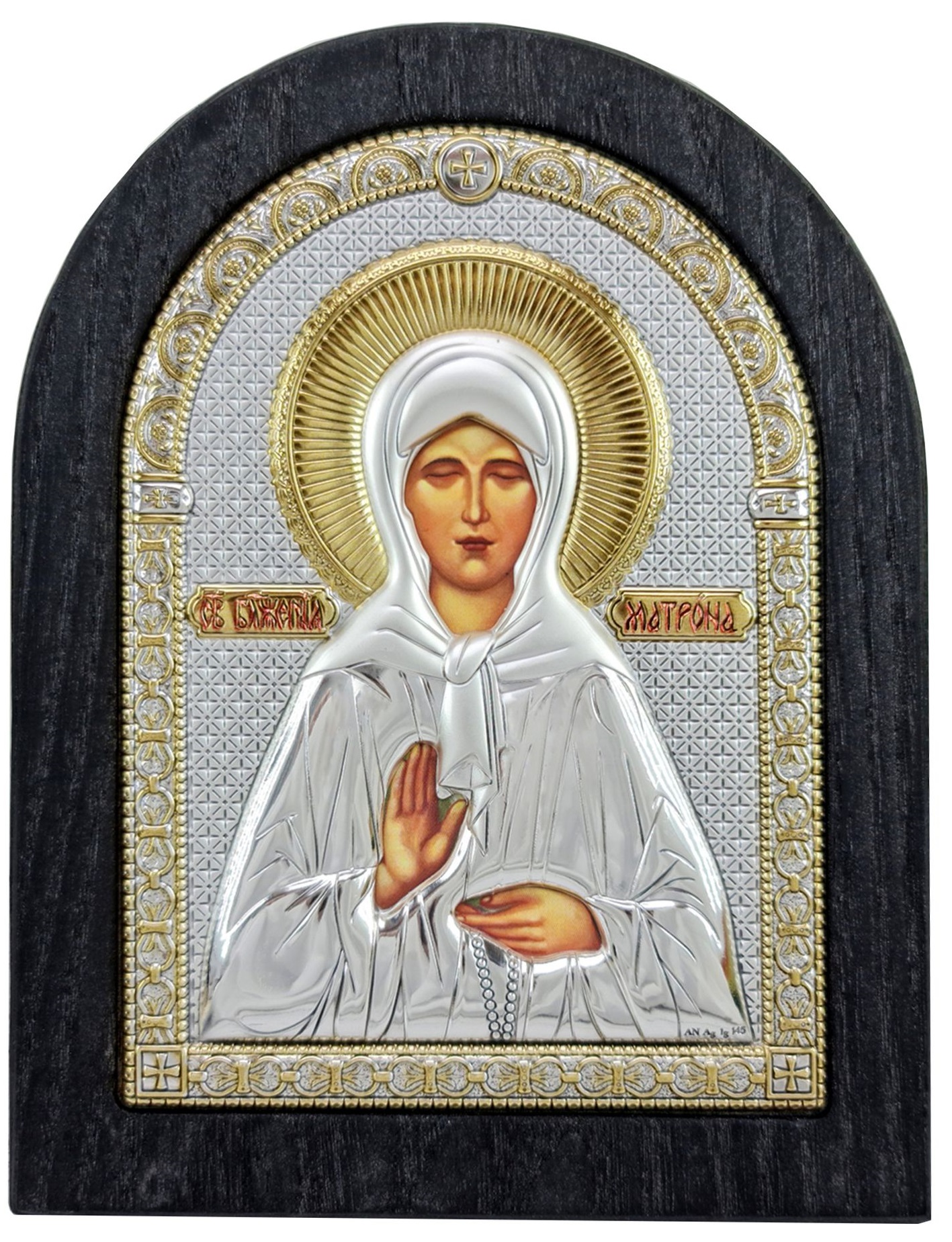 Икона св. Блаженная Матрона. Основа - цельный массив натурального дерева (дуб/ясень). Цвет - черный. Основание каждого изделия покрывается натуральным маслом, что обеспечивает гарантию высокого качества и долговечности каждого изделия. Имеет подставку.
