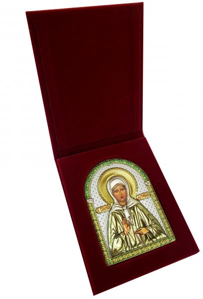Икона св. Блаженная Матрона. Выполнена на основе складного бархатного футляра. Удобно брать в дорогу.