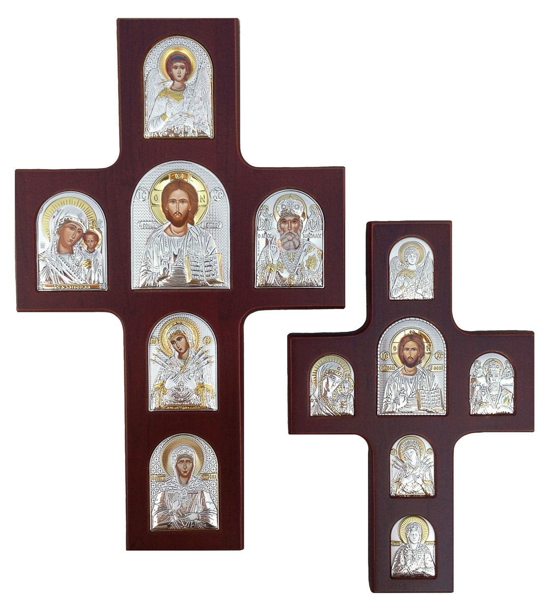 Лицевая часть оклада покрыта серебром повышенной 998 пробы - на окладе имеется клеймо по европейскому стандарту (Lam. Ag). Оклад имеет золотой декор. Лик выполнен масляной краской (шелкография).