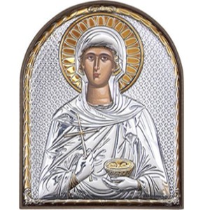 Икона св. Параскева Пятница. Выполнена на основе из пластика, имеет подставку.