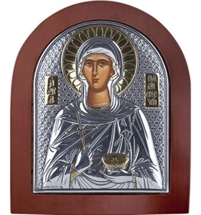 Икона св. Параскева Пятница. Выполнена на основе из дерева, имеет подставку.