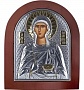 Лицевая часть оклада покрыта серебром повышенной 998 пробы - на окладе имеется клеймо по европейскому стандарту (Lam. Ag). Оклад имеет золотой декор. Лик выполнен масляной краской (шелкография).